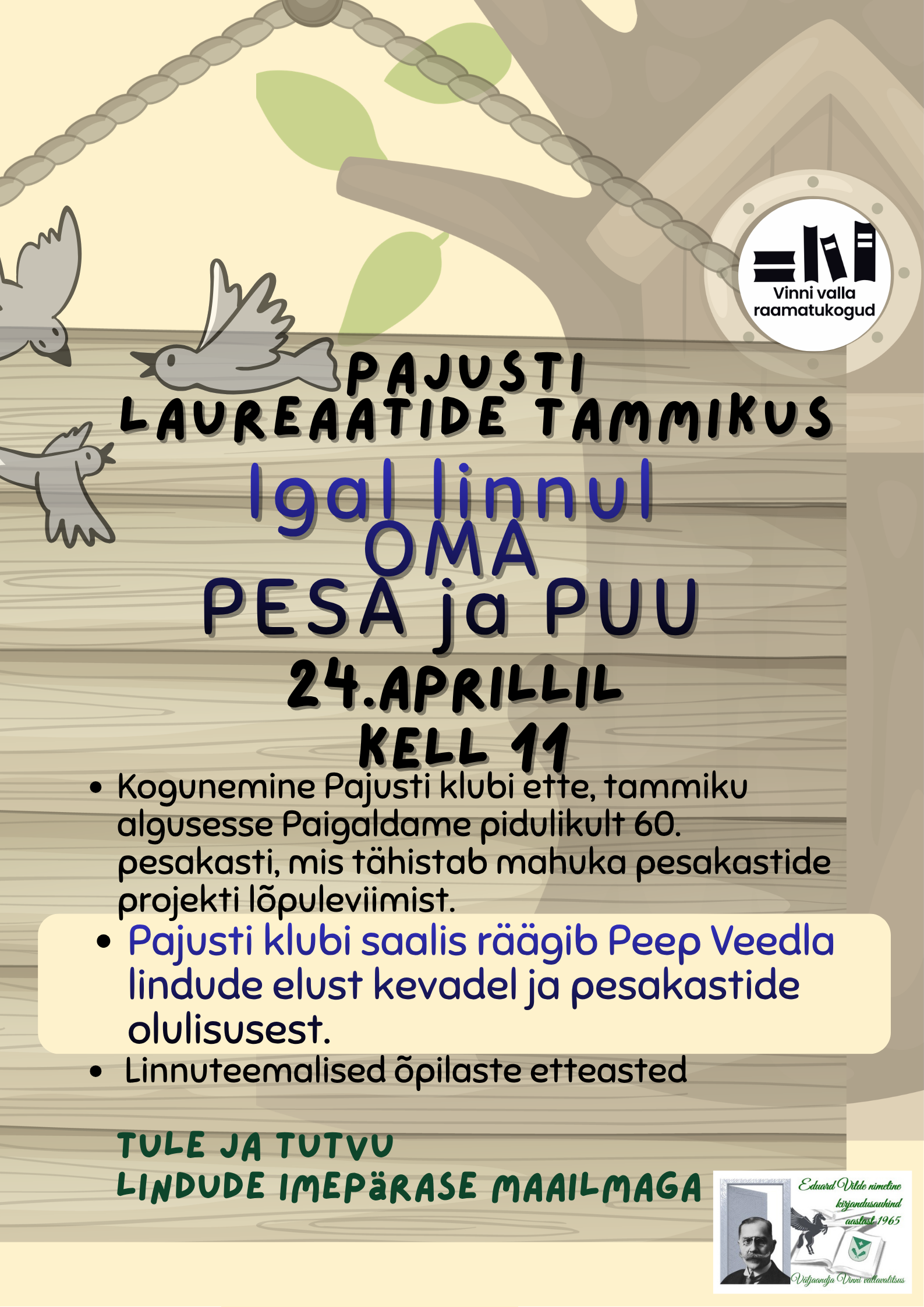 Tule24.aprillil Pajustisse laureaatide tammikusse ja tähista kevadet